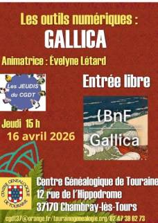 Le Centre Généalogique de Touraine propose des sessions de formations diverses, les Ateliers (2 h) et les cours organisés…